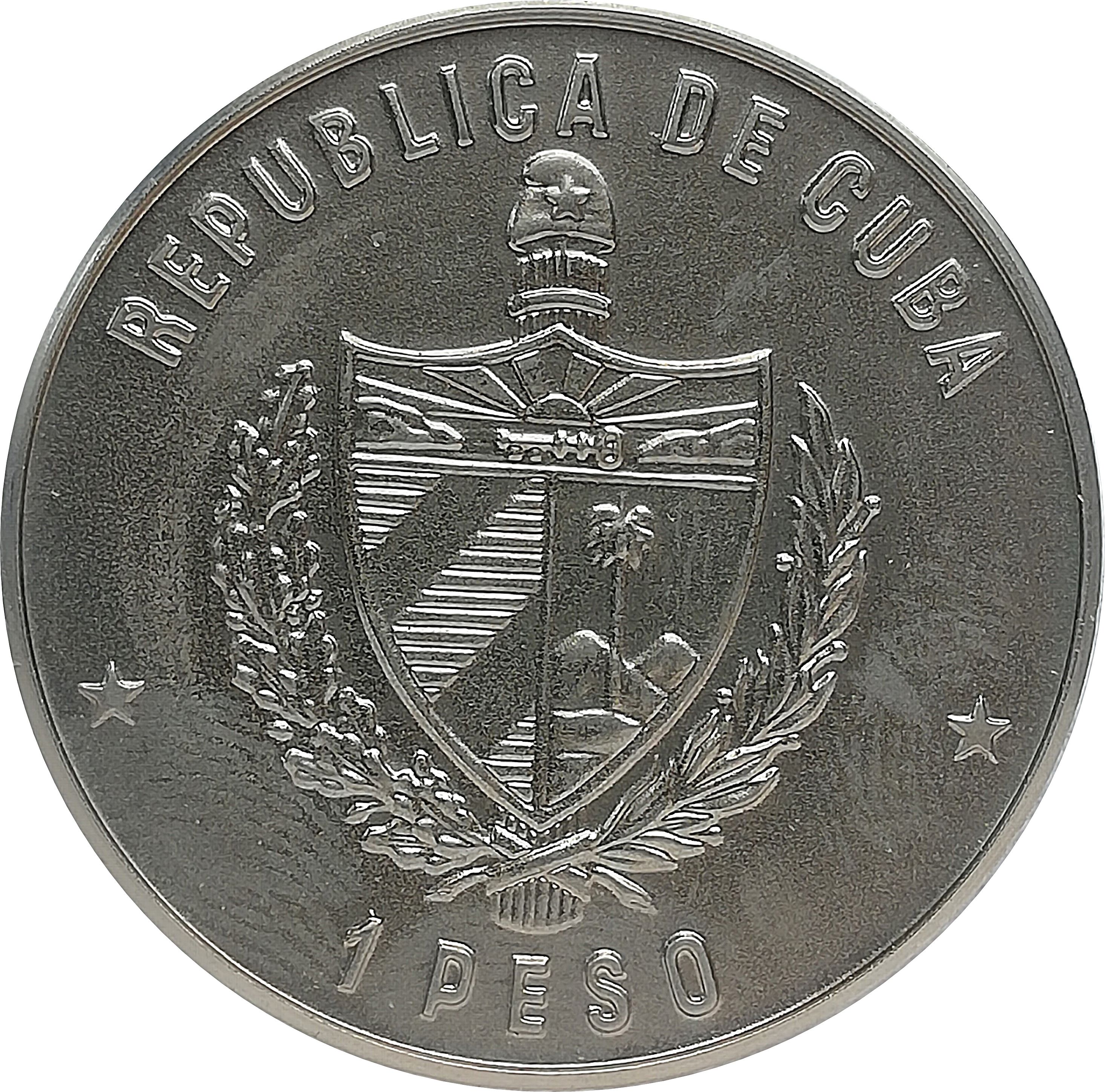 Описание: Герб Куби, назва країни у вигляді вигнутої легенди зверху, номінал знизу, 2 п'ятикутні зірки з боків.