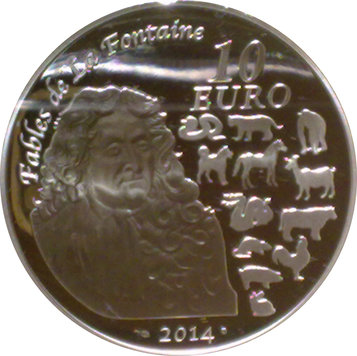 Описание: Портрет Жана де Лафонтена, а також усі тварини китайського зодіаку.