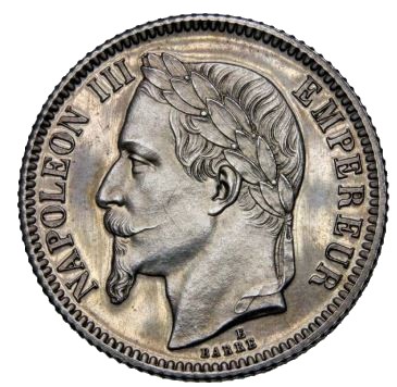 Описание: Зліва зображено голову Наполеона III в лавровому вінку, під ним підпис E і BARRE.