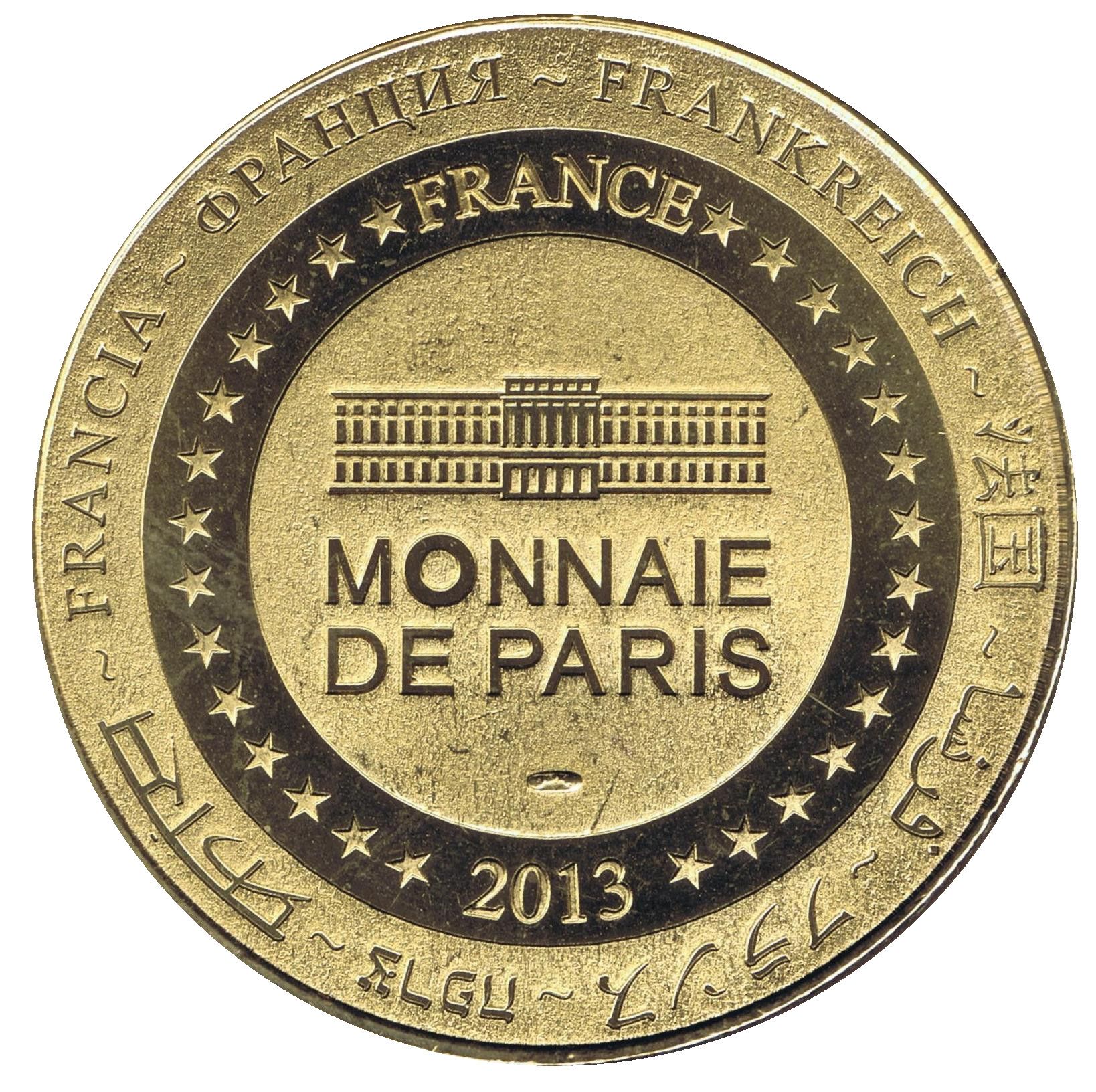 Описание: На периферії слово «Франція» написано вісьмома мовами. Франція на 12-й годині, 2013 рік на 6-й годині, все пов'язано 14 зірками праворуч і ліворуч. У центрі — будівля Monnaie de Paris.