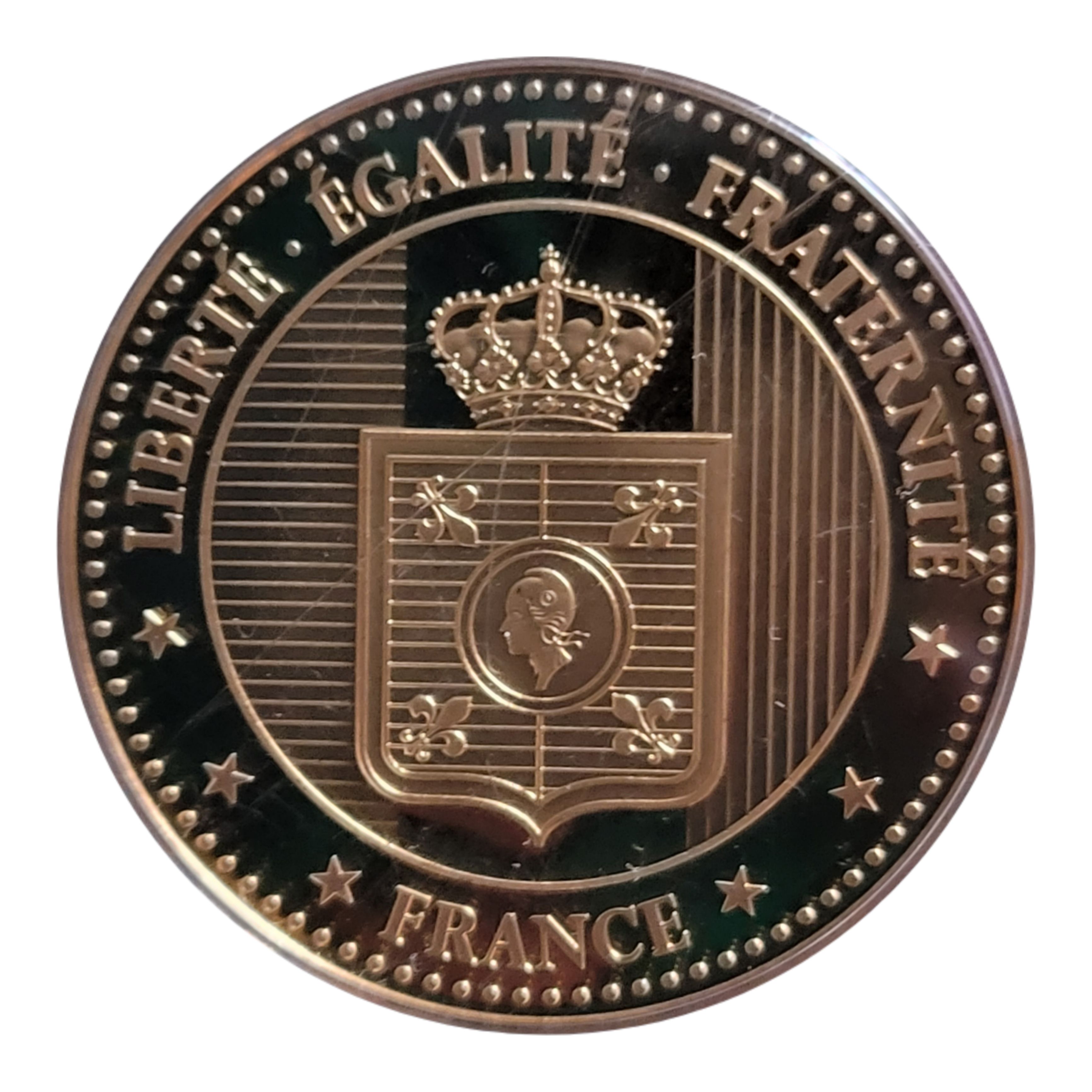 Описание: Французький девіз з 4 ліліями та французькою Маріанною в центрі, увінчаний короною, на якій видно 6 зірок.