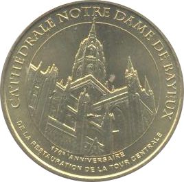 Туристична монета Monnaie de Paris — Байо (Собор Нотр-Дам — 170-та річниця відновлення Центральної вежі)