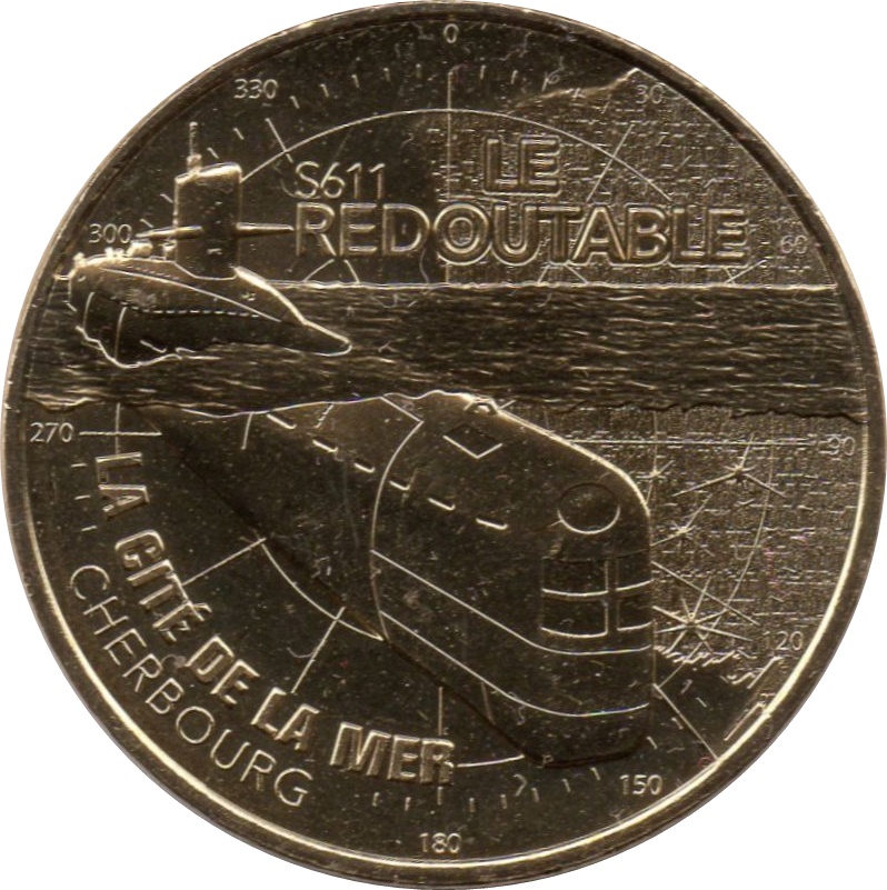 Туристична монета Monnaie de Paris — Шербур (La Cité de la Mer — Le Redoutable S611)