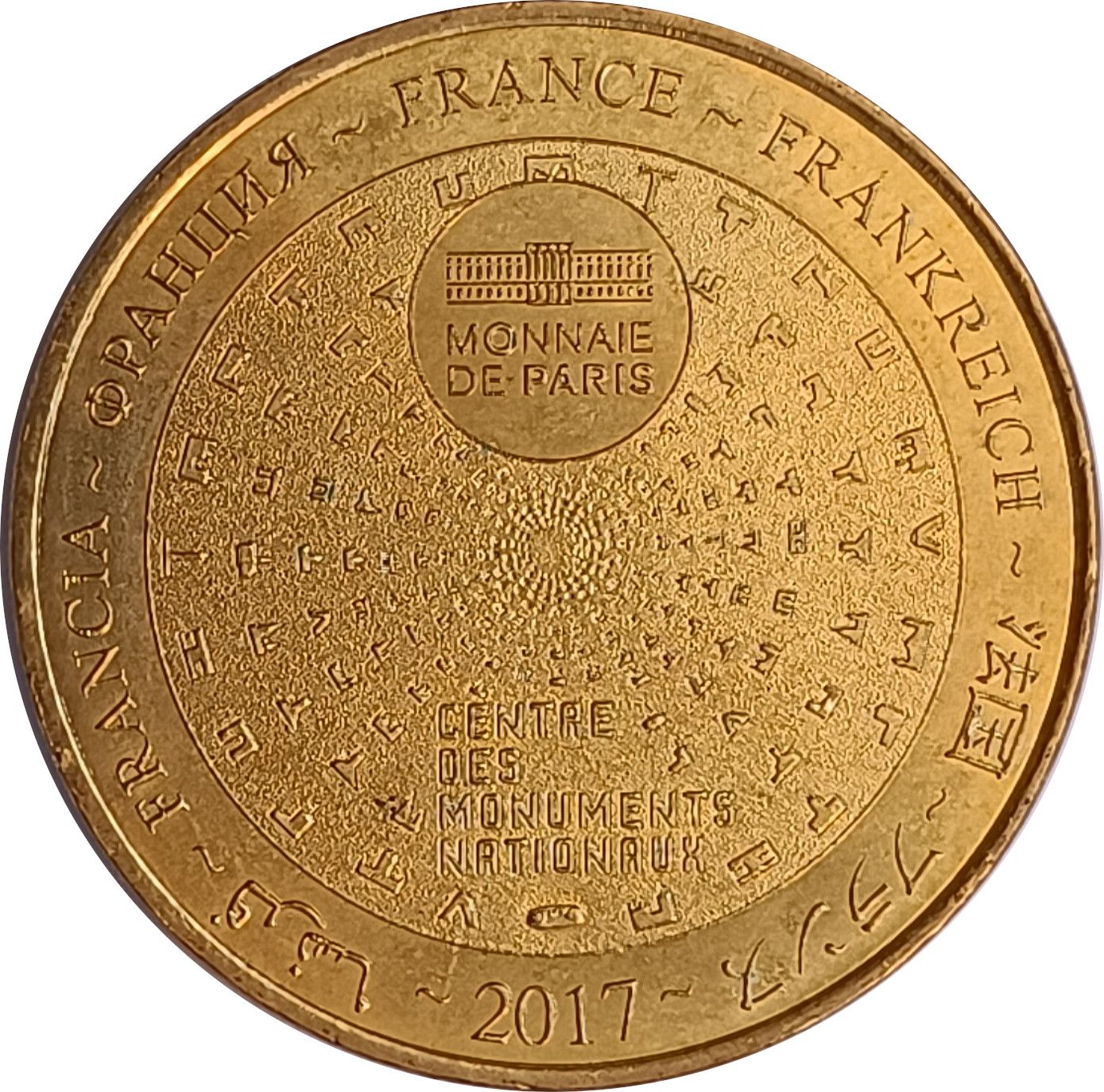 Описание: На периферії слово «Франція» написано шістьма мовами. На 12-й годині — будівля Monnaie de Paris. Піктограми Centre des Monuments Nationaux сходяться до центру.