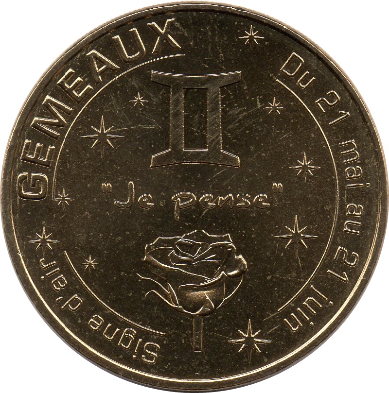 Название: Туристична монета Monnaie de Paris — Gémeaux (Signe d'air — Du 21 mai au 21 juin)
