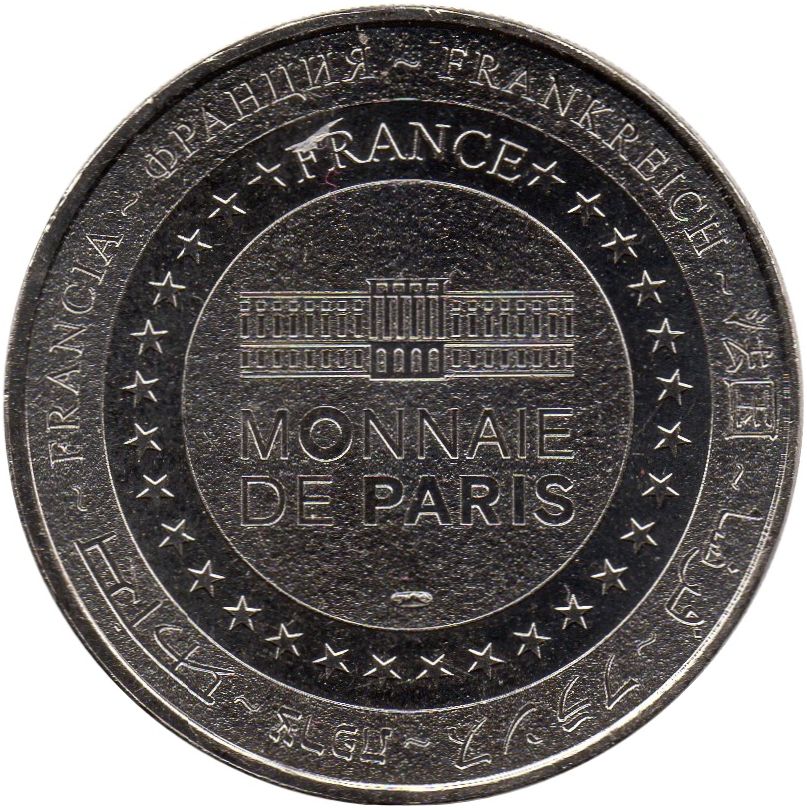 Описание: Будівля Монетного двору Парижа, зображена в колі. Напис «Франція» різними мовами оточує ліст. 28 зірок оточують будівлю Монетного двору Парижа.