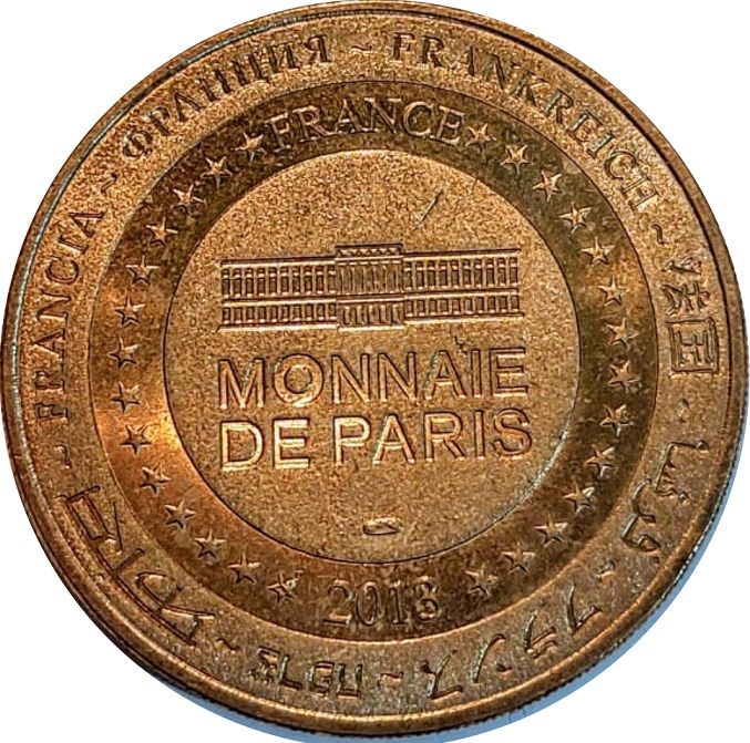 Описание: На периферії слово «Франція» написано вісьмома мовами. Франція на 12-й годині, 2013 рік на 6-й годині, все пов'язане 14 зірками праворуч і ліворуч. У центрі — будівля Монетного двору Парижа.