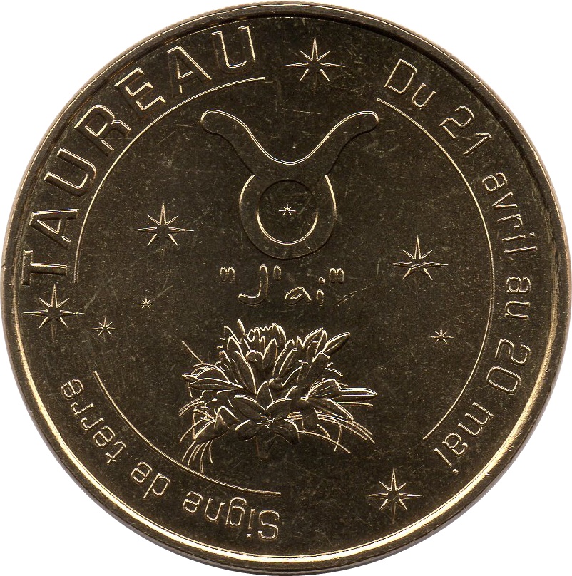 Название: Туристична монета Monnaie de Paris — Taureau (Signe de terre — Du 21 avril au 20 mai)