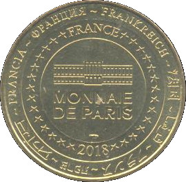 Описание: На периферії слово «Франція» написано вісьмома мовами. Франція на 12-й годині, 2018 рік на 6-й годині, все пов'язане 14 зірками праворуч і ліворуч. У центрі — будівля Монетного двору Парижа.