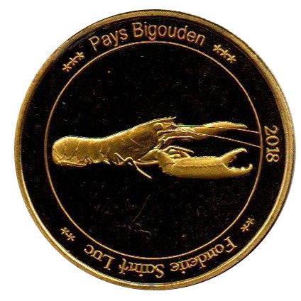 Описание: Лангустін у центрі. «Pays Bigouden», «Fonderie Saint Luc» та «2018» написано дугою.