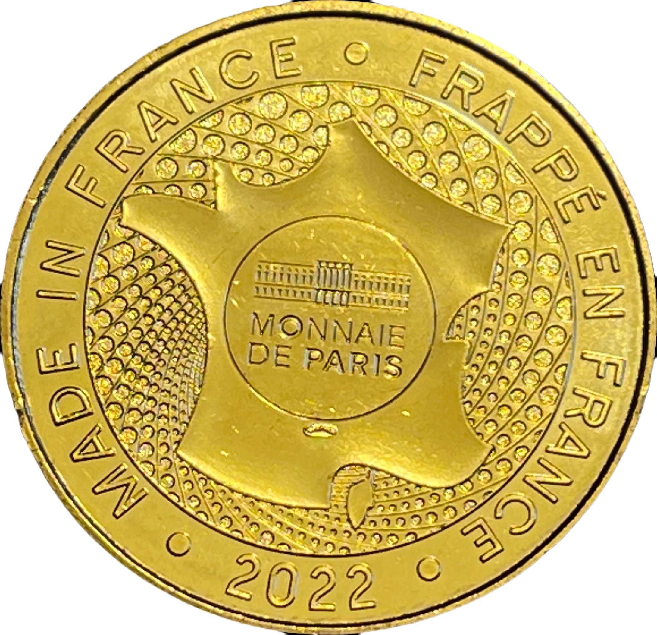 Описание: Стилізована карта Франції з логотипом Monnaie de Paris у колі в центрі.