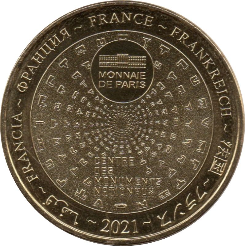 Описание: На периферії слово «Франція» написано сімома мовами. У положенні «12 годин» зображено будівлю Monnaie de Paris у колі. Піктограми Centre des Monuments Nationaux сходяться в центрі.