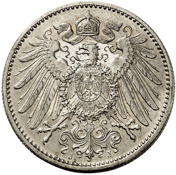 1 марка — Вильгельм II (тип 2 — маленький щит — образец)