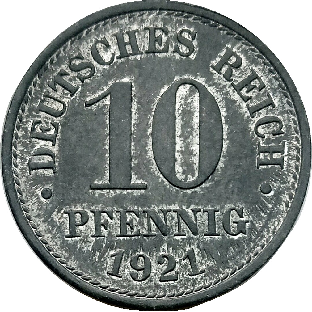Название: 10 пфеннигов (тип 2 — маленький щит; без монетных знаков)