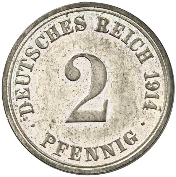 2 пфеніга — Вільгельм II (тип 2 — малий щит — зразок)