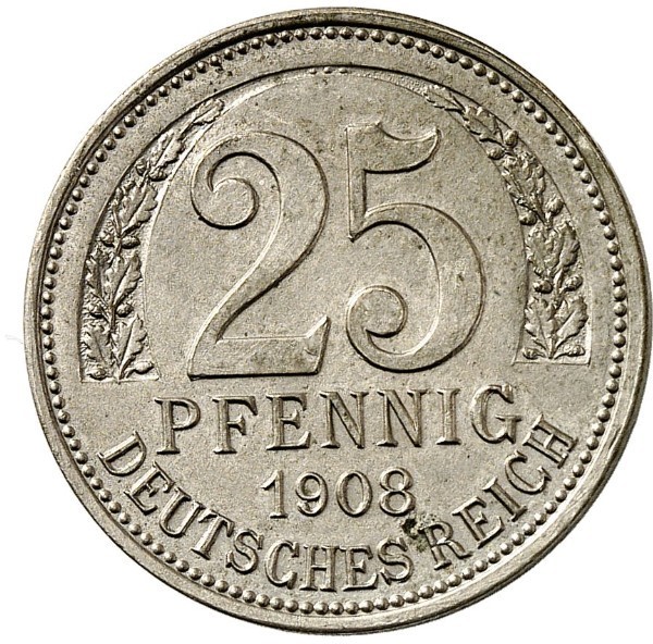 Название: 25 пфеннигов — Вильгельм II (образец)