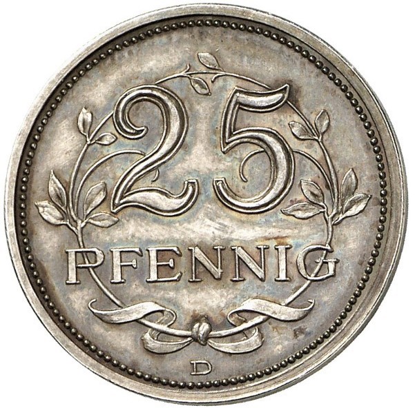 Название: 25 пфеннигов — Вильгельм II (образец)