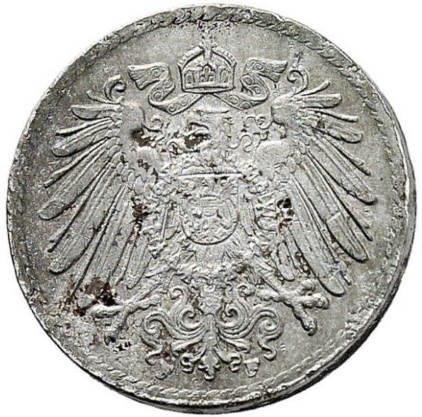 Название: 5 пфеннигов — Вильгельм II (тип 2 — маленький щит — образец)