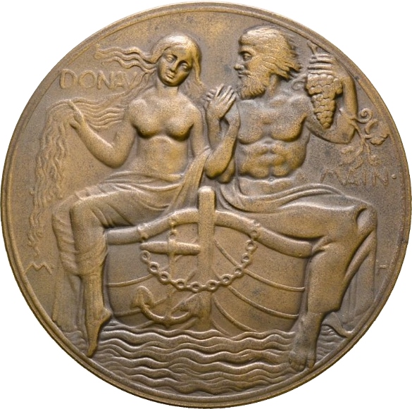 Описание: Персоніфікації річок Дунай і Майн, що сидять на човні.