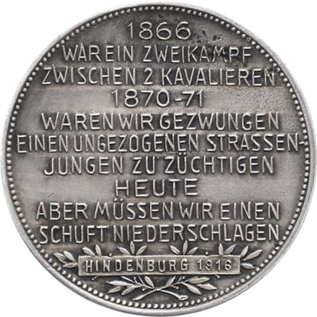 Медаль — фельдмаршал Пауль фон Гінденбург; патріотична промова