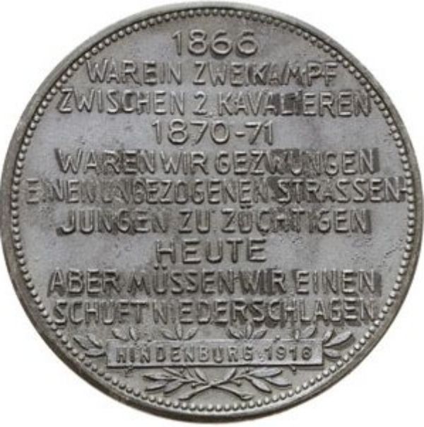 Медаль — фельдмаршал Пауль фон Гінденбург; патріотична промова