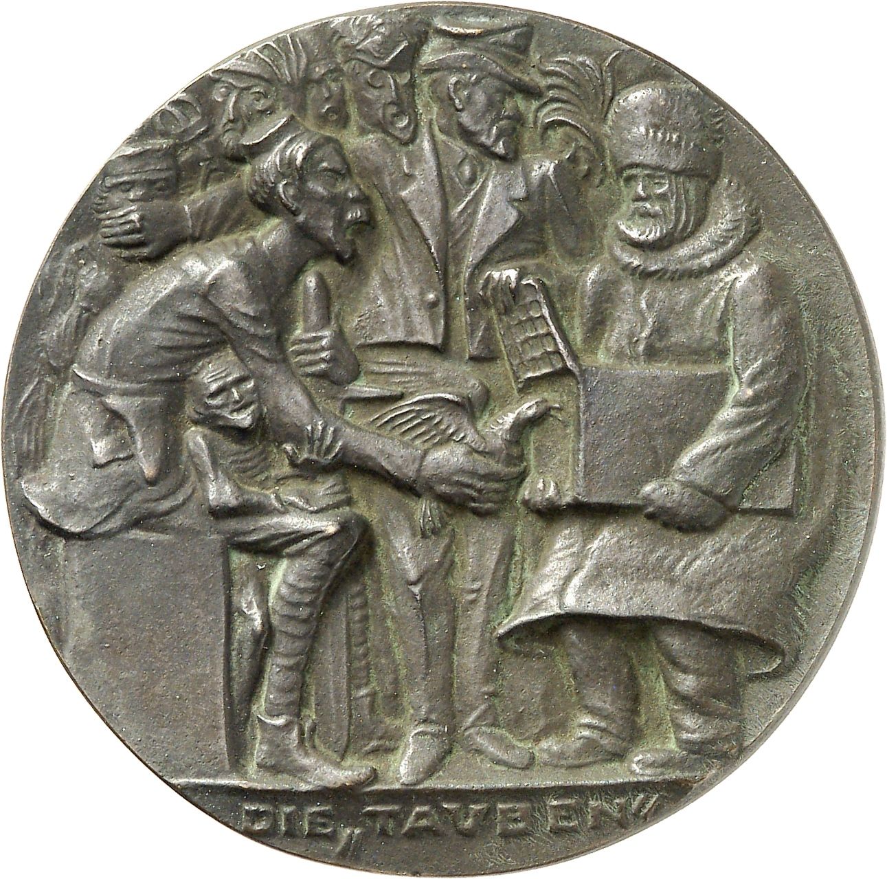 Описание: Дві руки в обладунках тримають голуба миру з розпростертими крилами та оливковою гілкою в дзьобі ліворуч.