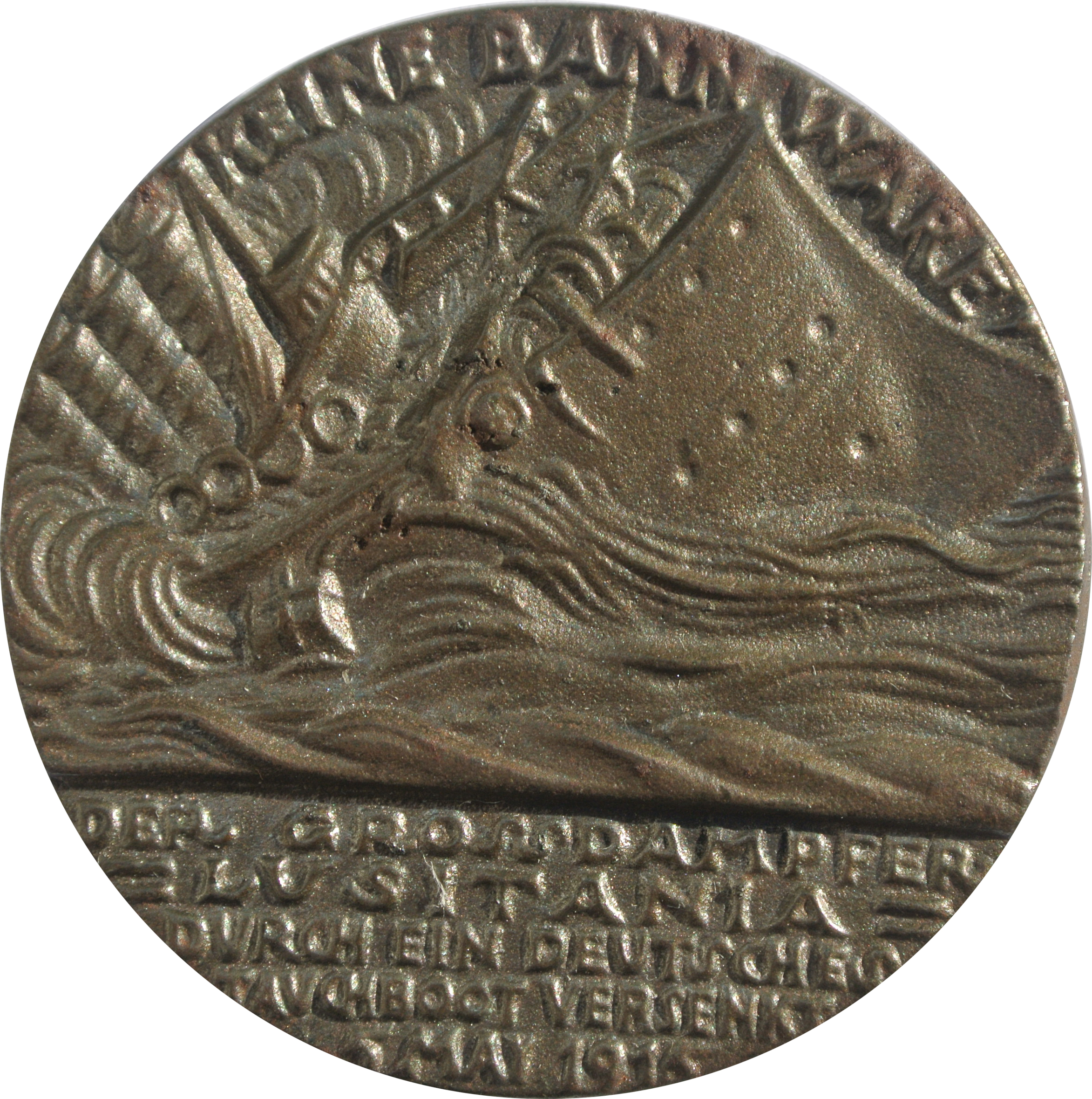 Описание: Затоплення «Лузітанії» в бурхливому морі; п'ять рядків в екзергу.