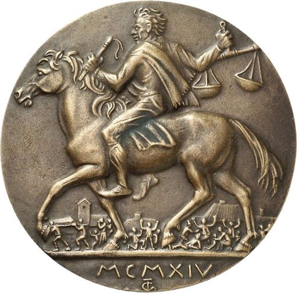 Описание: Вершник з батогом і вагами ліворуч. Плачучі люди внизу.