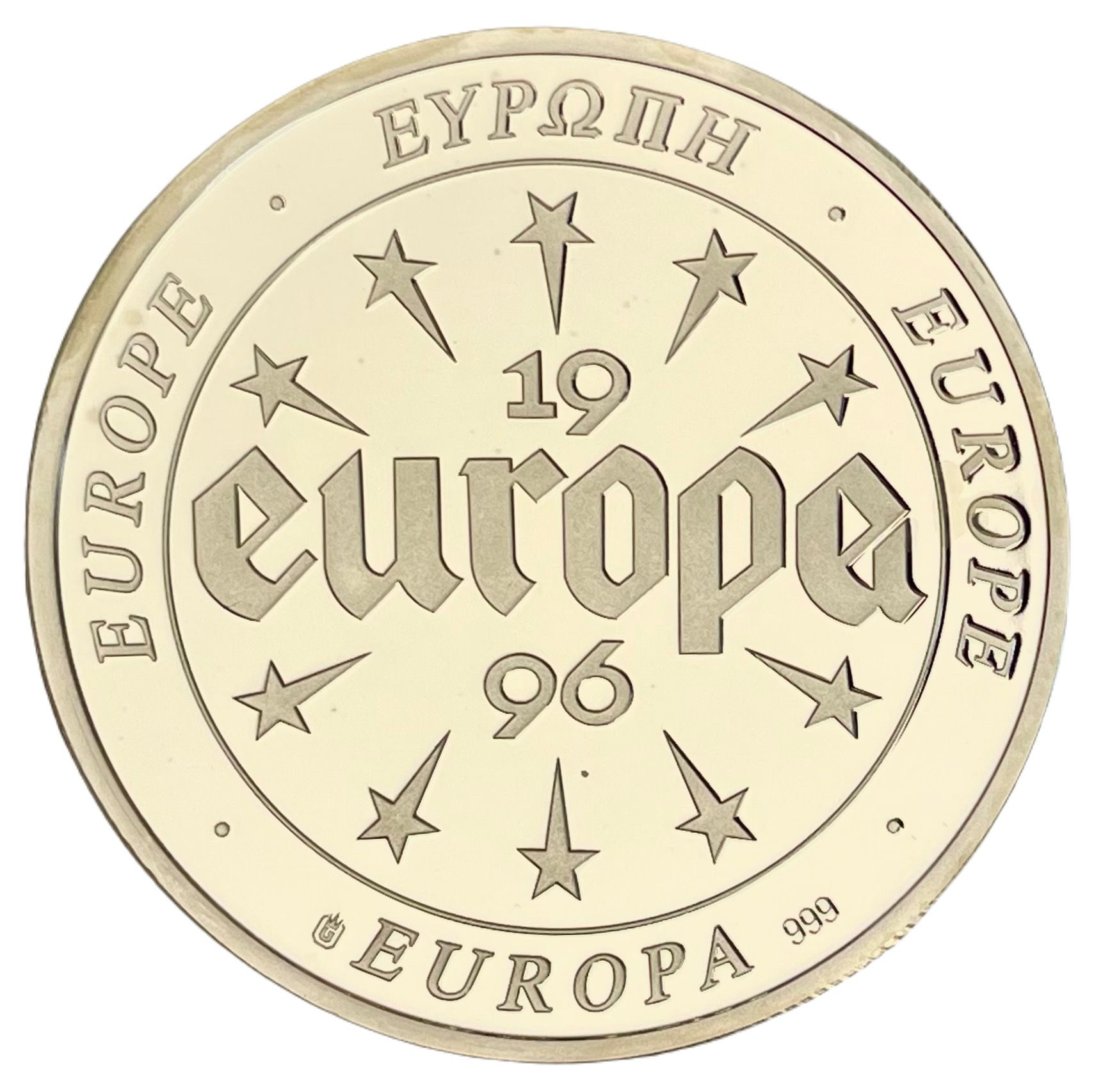 Описание: Кругова легенда, в центрі 10 падаючих зірок, що оточують слово EUROPÆ, написане готичними літерами.