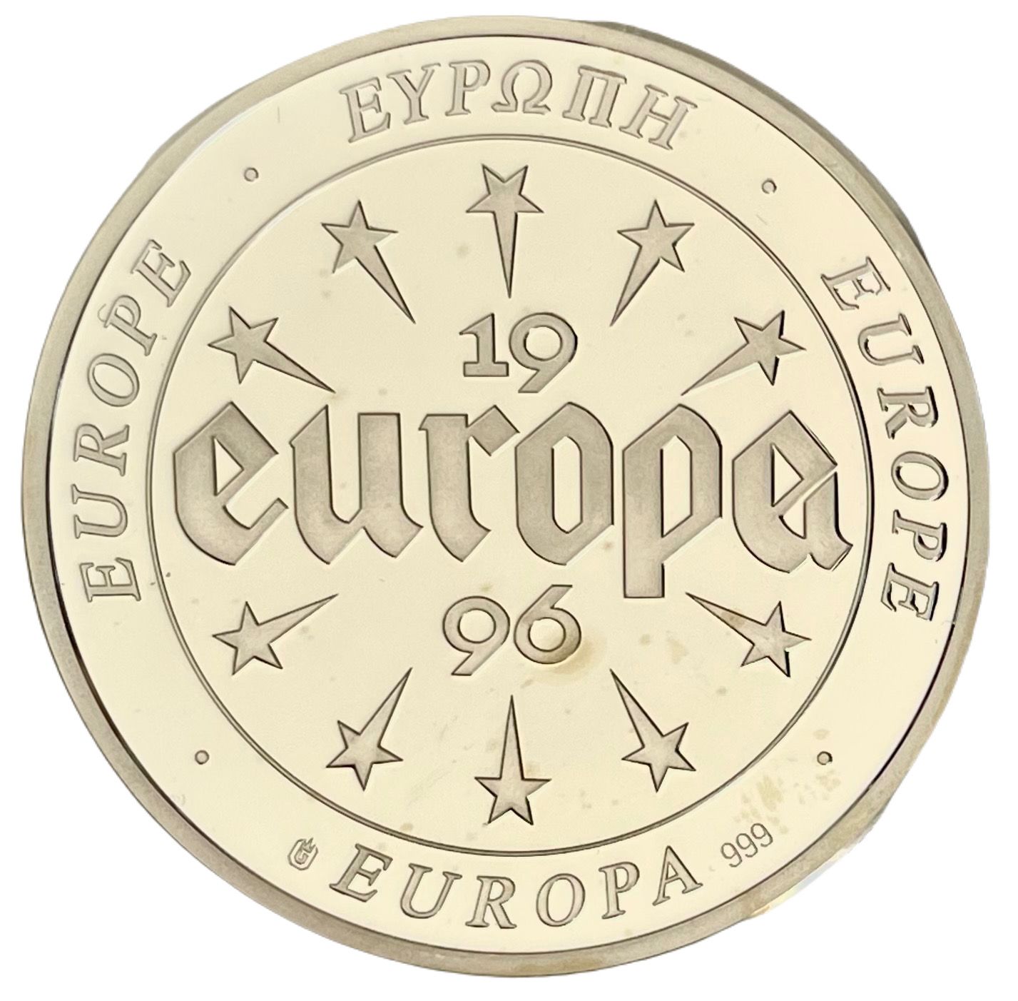 Описание: Кругова легенда, в центрі 10 падаючих зірок, що оточують слово EUROPÆ готичними літерами.