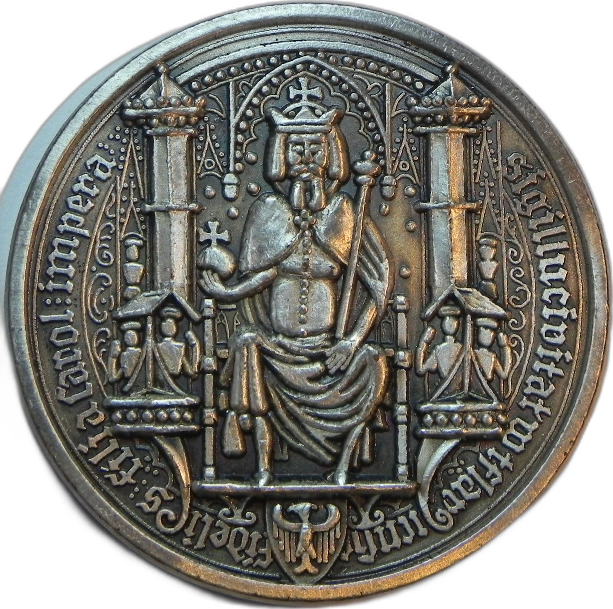 Описание: Репродукція печатки 1374 року з портретом короля Карла IV.