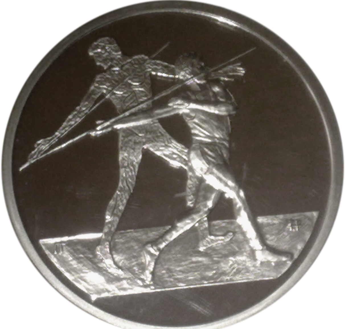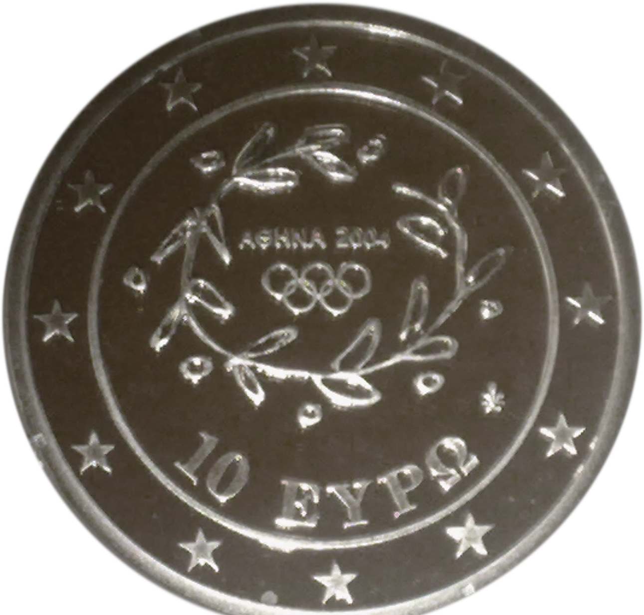 Описание: Дизайн складається з емблеми Літніх Олімпійських ігор 2004 року в Афінах, вінка з гілки оливкового дерева, або котіноса, що є відсиланням до античних Олімпійських ігор, де котінос був офіційною нагородою олімпійських чемпіонів. Вінок навколо олімпійських кілець оточений колом, облямованим 12 зірками.