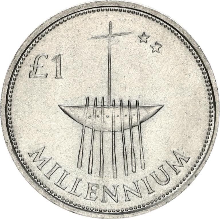 Описание: Крест внутри стилизованного древнего корабля с длинными веслами, над которым расположены две звезды. Корабль был создан по образцу золотой лодки, найденной в 1896 году в Северной Ирландии (сокровище Бройтер), которая в настоящее время хранится в Национальном музее в Дублине.
