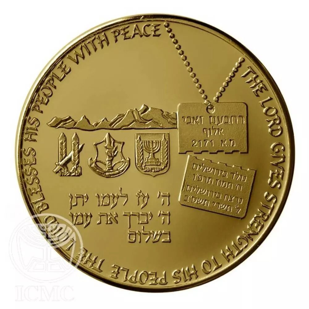 Описание: Емблема держави Ізраїль, емблема ІДФ та емблема Пальмах; зламана військова бирка з його ім'ям, званням і військовим номером, а також датами його народження та призначення, що символізує військову бирку, яку він постійно носив із іменами зниклих безвісти та військовополонених Ізраїлю. Вірш із Псалмів викарбуваний справа наліво, по краю медалі: «ГОСПОДЬ ДАЄ СИЛУ СВОЄМУ НАРОДУ, ГОСПОДЬ БЛАГОСЛОВЛЯЄ СВІЙ НАРОД МИРОМ».