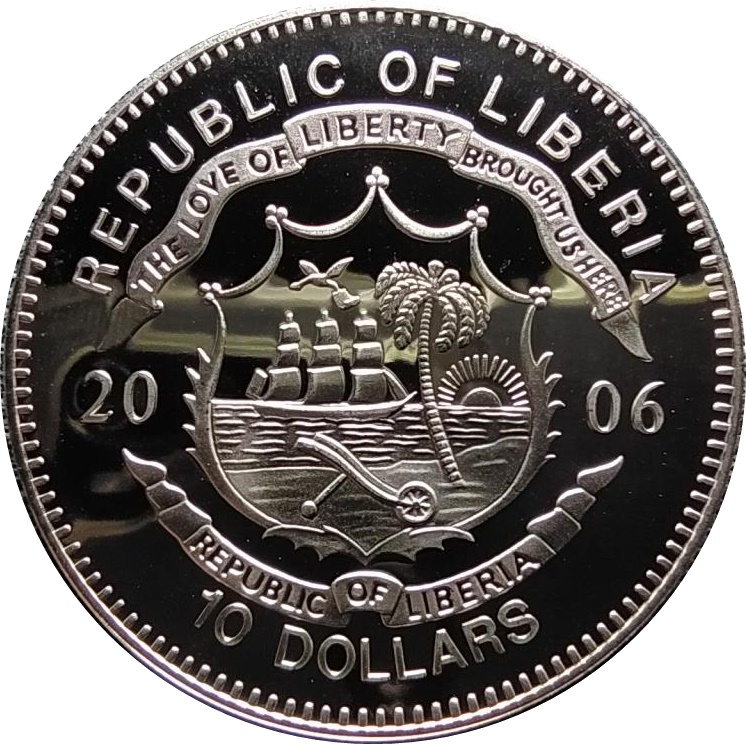 Описание: Coat of arms of Liberia divides date, denomination below.