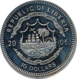 Описание: Coat of arms of Liberia divides date, denomination below.