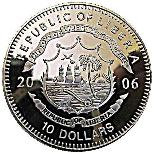 Описание: Coat of arms of Liberia divides date, denomination below.