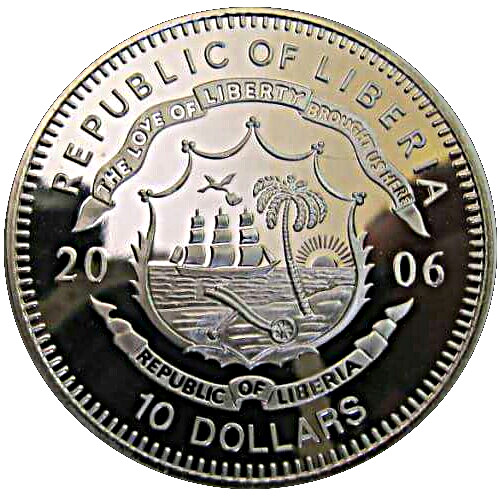 Описание: Герб Либерии разделяет дату и номинал, указанные ниже.