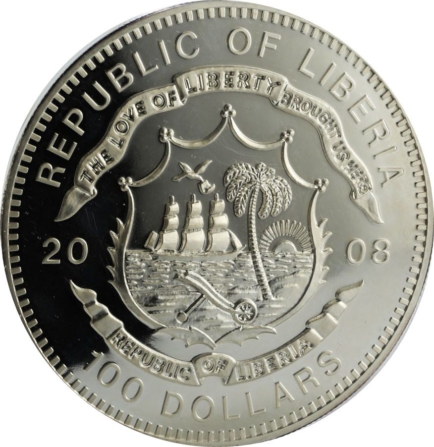 Описание: Герб Либерии разделяет дату и номинал, указанные ниже.