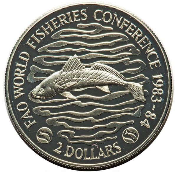 Название: 2 доллара (Всемирная конференция ФАО по рыболовству; серебряная монета Piedfort)