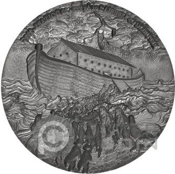 Описание: Перевернутое изображение аверса с Ноевым ковчегом, над которым бушует небо, волнами и животными, направляющимися к ковчегу.