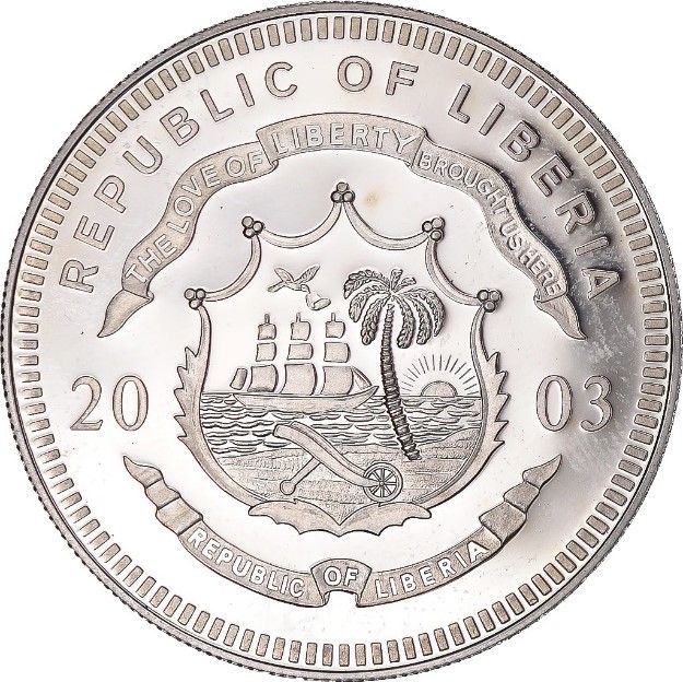Описание: Герб Либерии разделяет дату.