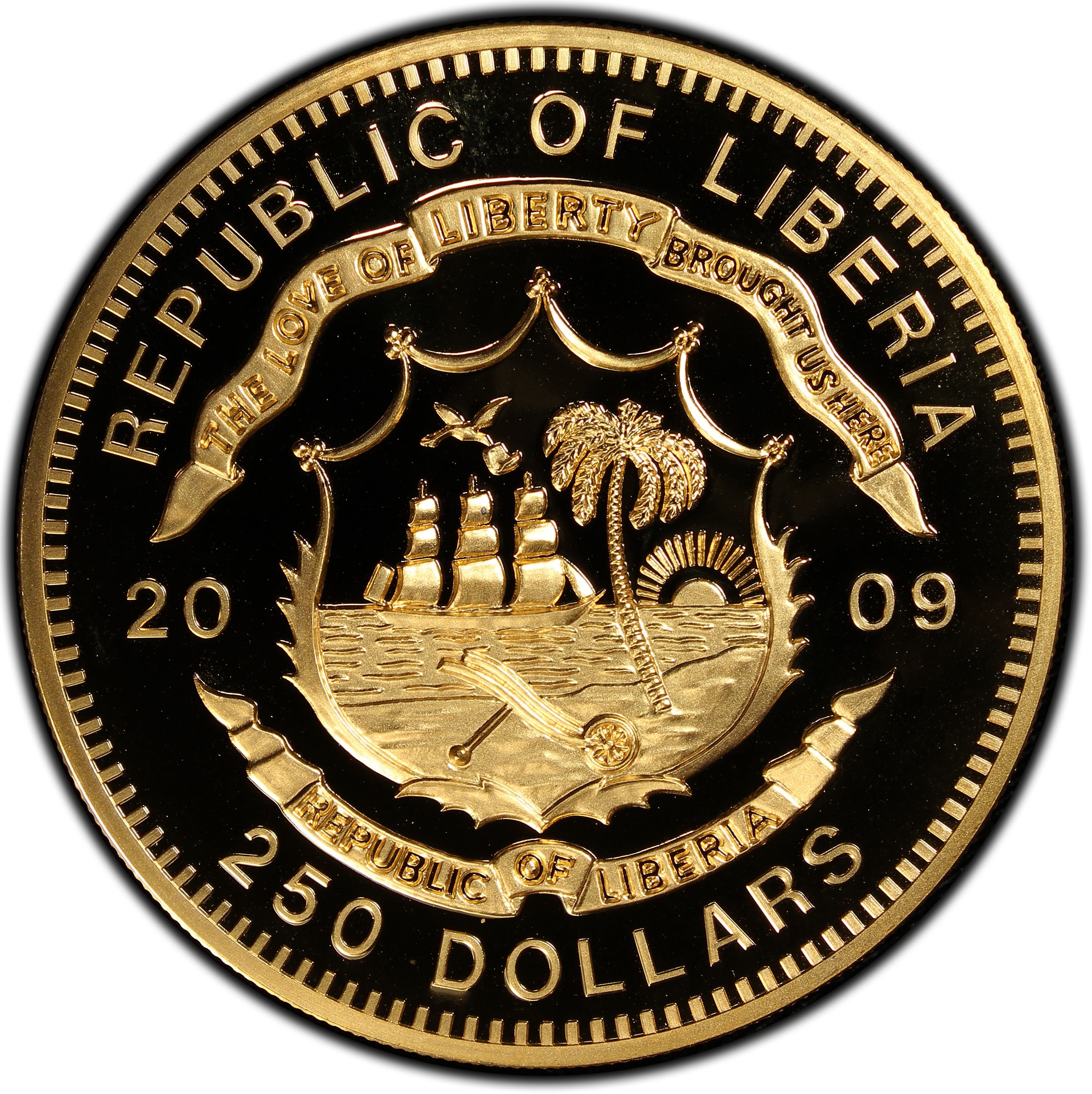 Описание: Герб Либерии разделяет дату и номинал, указанные ниже.