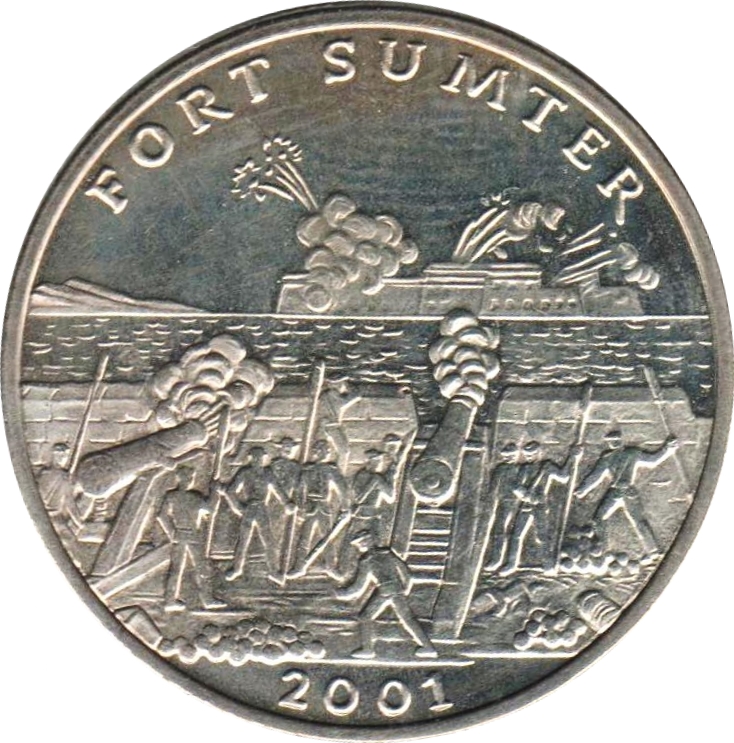 Описание: Бомбардування форту Самтер. Напис зверху: «FORT SUMTER». Дата 2001 знизу.