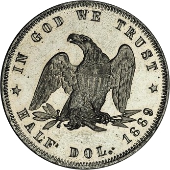 Описание: Орел над лавровой ветвью и стрелами, обращенными влево, с гербом на груди.