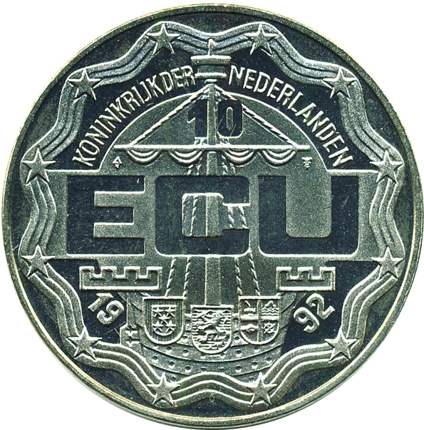 Описание: Велика ЕКЮ «середньовічний вітрильник, 12 зірок у стрічковій облямівці». Приватний знак на носі.