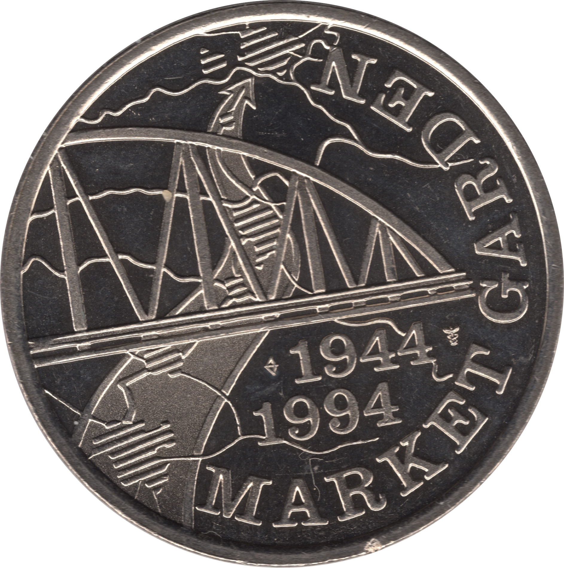 Описание: На задньому плані — військова карта з лінією атаки. На передньому плані — міст із датами та знаками монетного двору внизу. Напис праворуч.