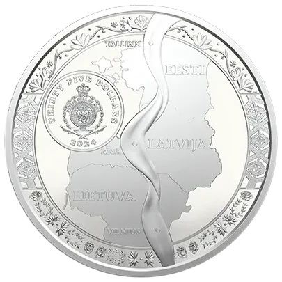 Описание: Государственная печать Ниуэ с картой стран Балтии