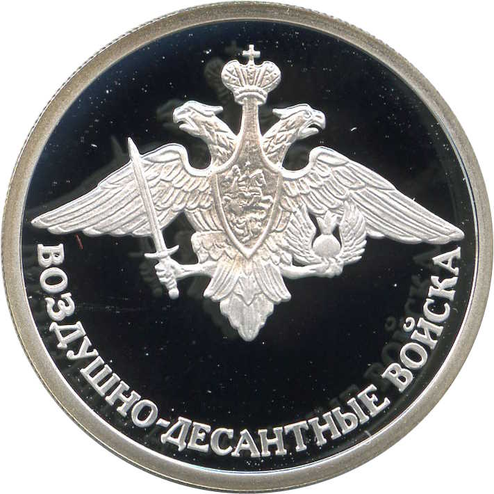 Описание: Зображення емблеми повітряно-десантних військ Збройних сил Російської Федерації. Напис внизу вздовж краю: «ВОЗДУШНО-ДЕСАНТНЫЕ ВОЙСКА» (ПОВІТРЯНО-ДЕСАНТНІ ВІЙСЬКА).