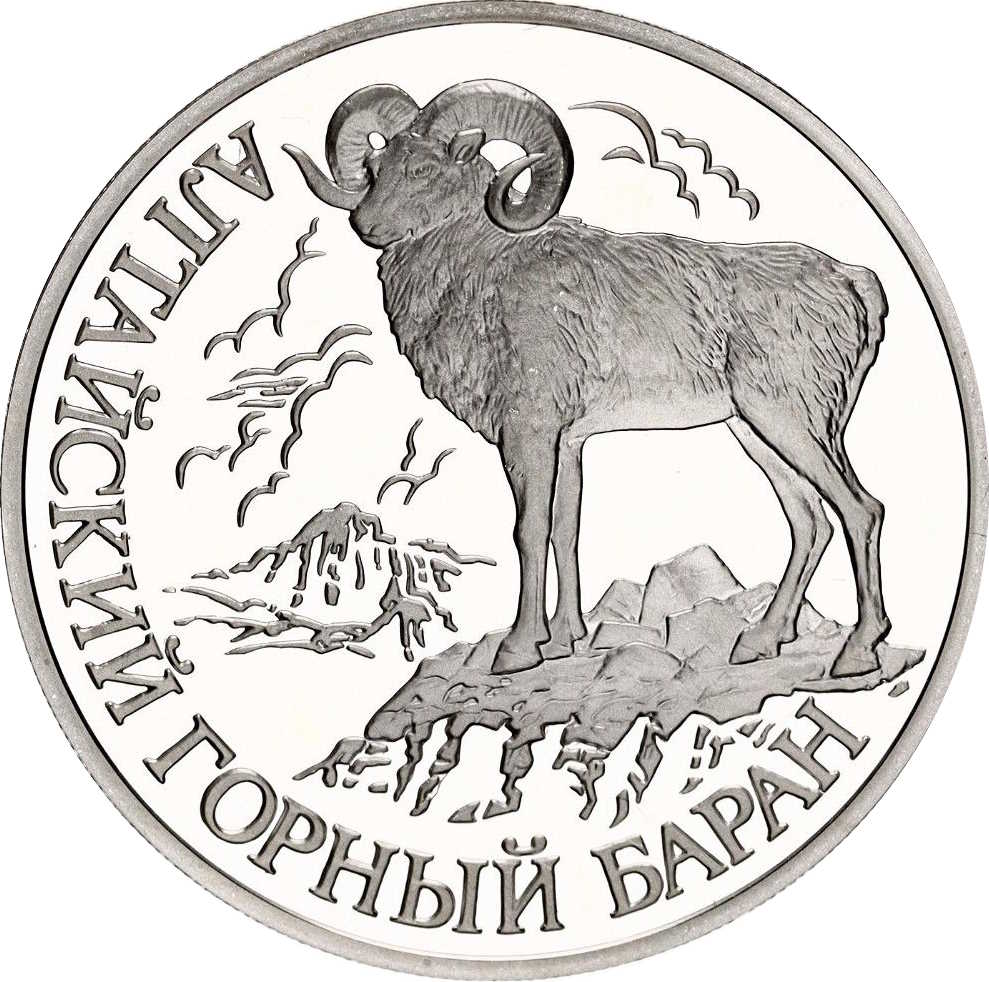 Описание: Зображення алтайського гірського барана. Напис ліворуч уздовж краю: «АЛТАЙСКИЙ ГОРНЫЙ БАРАН» (АЛТАЙСЬКИЙ ГІРСЬКИЙ БАРАН).